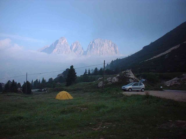 Here's the layby we spent most of our nights in (Pordoi pass). Alt 2500m. Funfingerspitzen in the background.